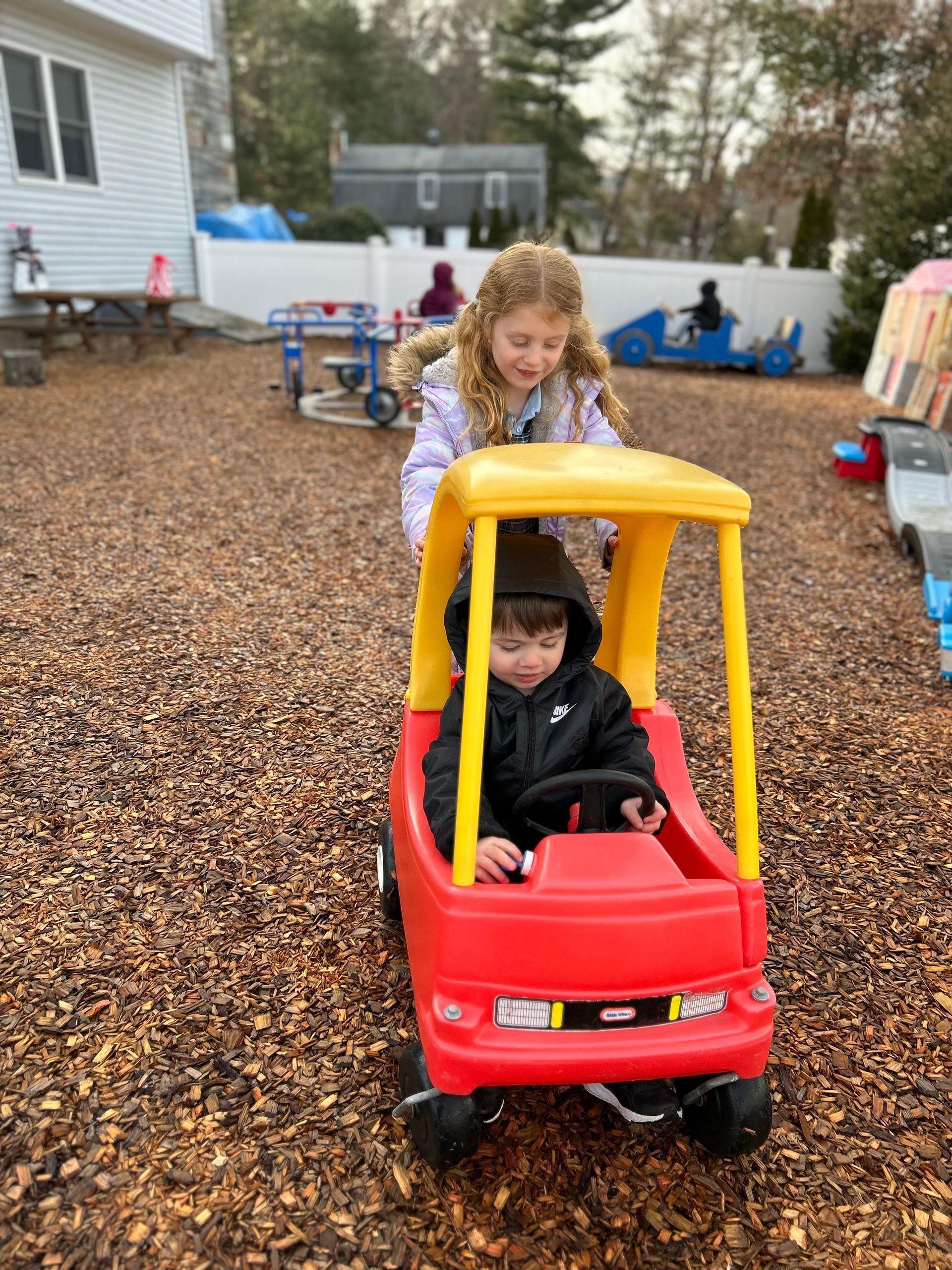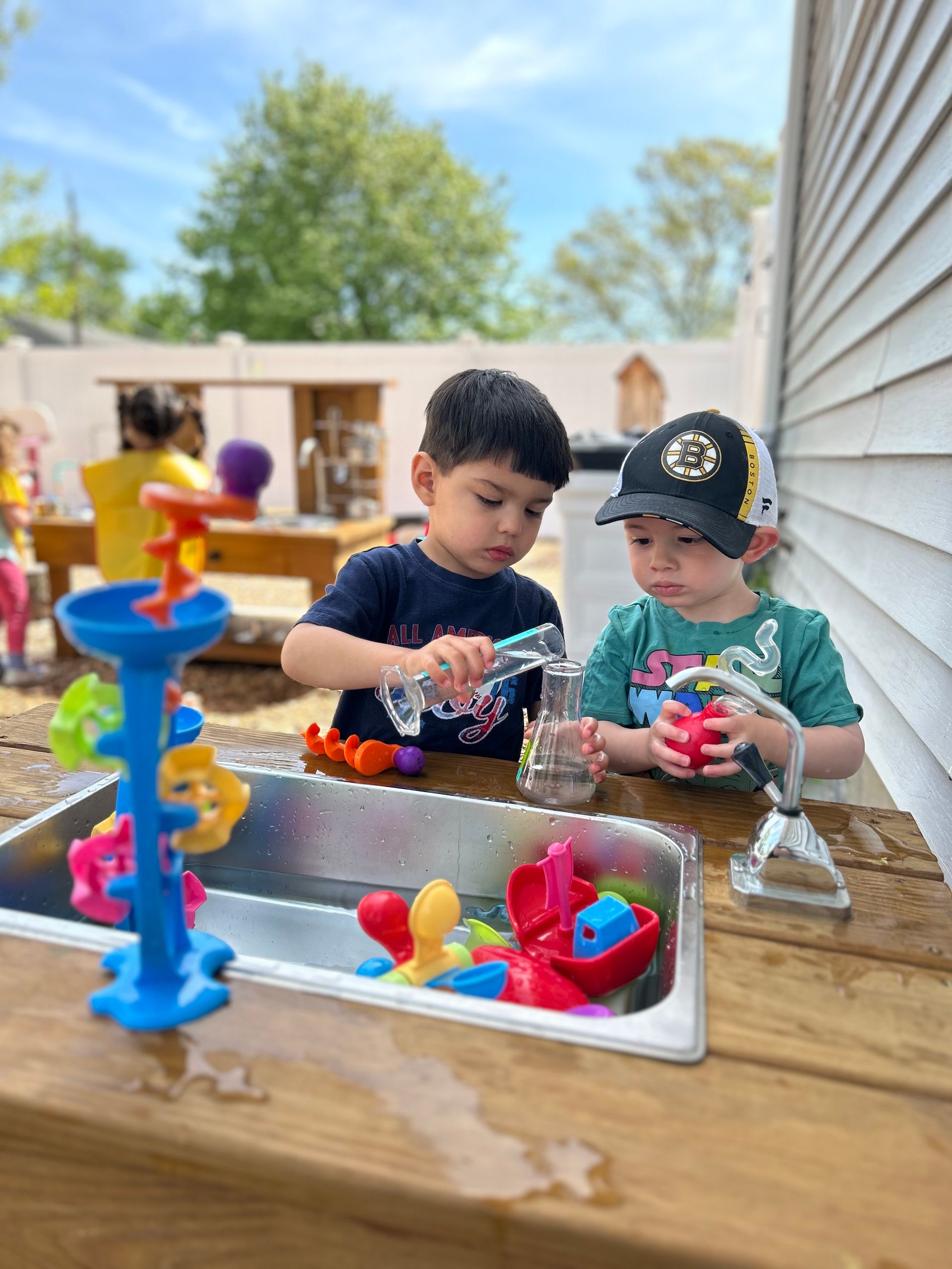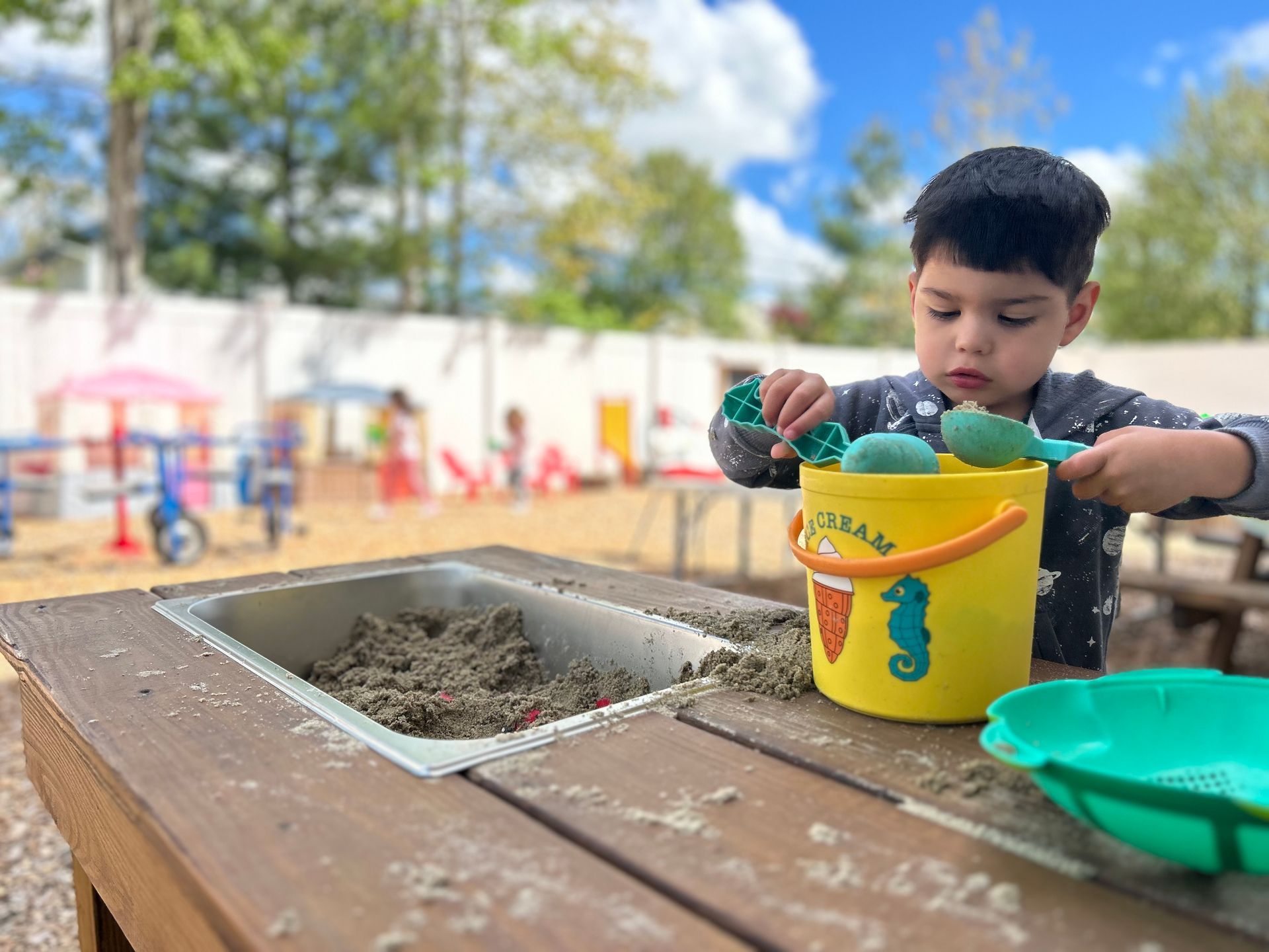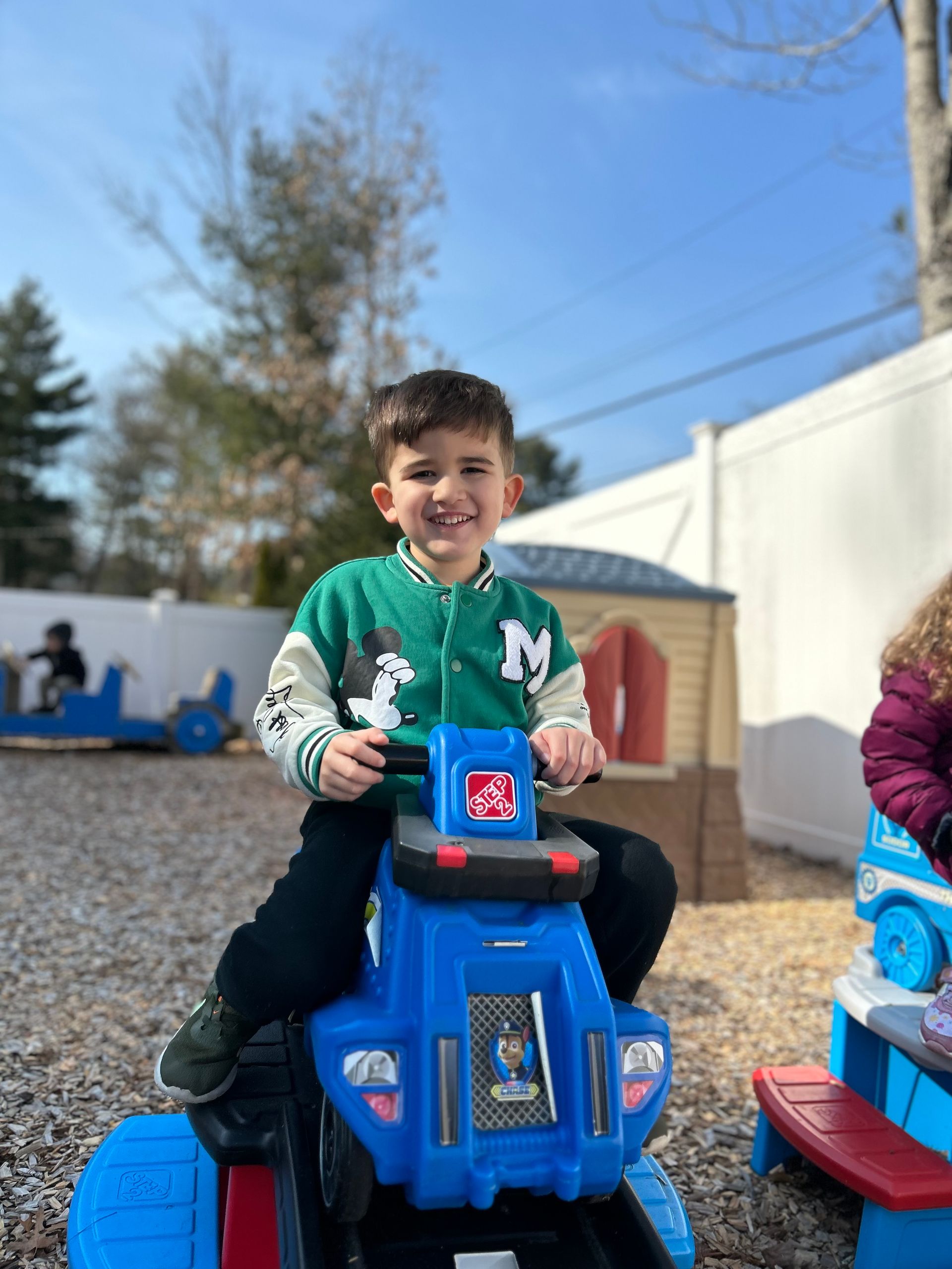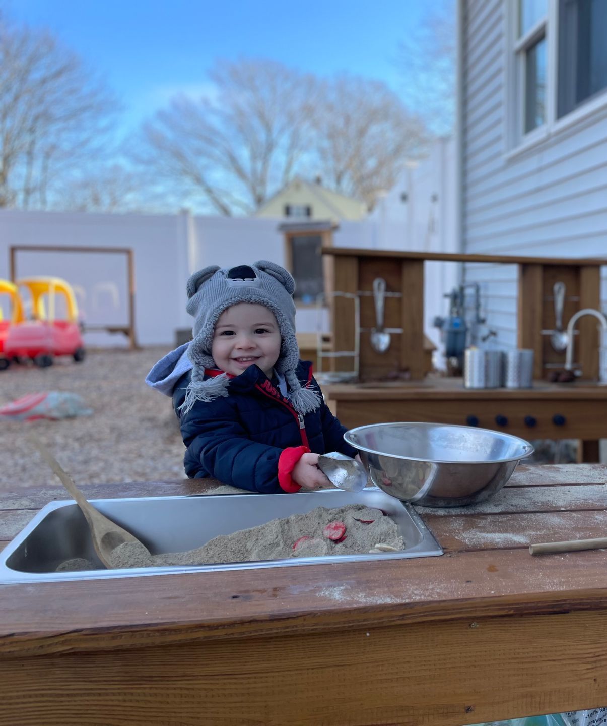 Children can enjoy all the outdoor opportunities our New England seasons offer such as jumping in leaves, sledding, riding tricycles, and playing in the sand and water tables.